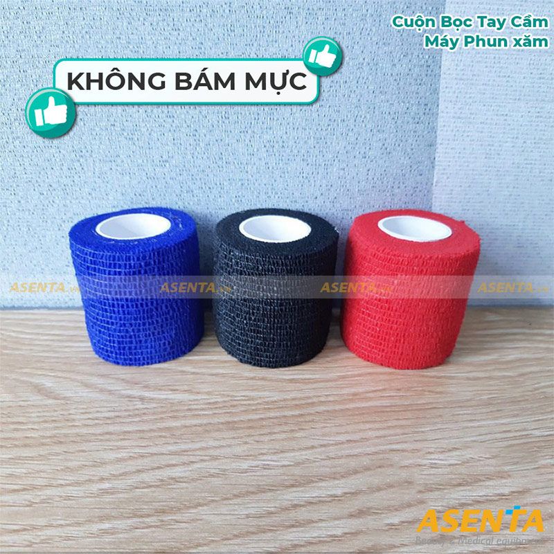 Bandage quấn máy là cuộn bọc tay cầm máy phun xăm với công dụng giúp cho các thợ phun xăm khi cầm máy có độ chắc chắn, không bị trơn trượt. Ngoài ra, bandage còn có thể giúp máy phun xăm có giữ vệ sinh, sạch sẽ không bị dính mực.