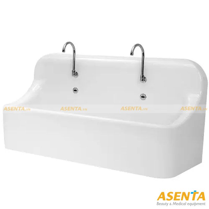 Bồn rửa tay tiệt trùng composite 2 vòi giúp quá trình rửa tay của các bác sĩ và y tá diễn ra nhanh hơn so với dùng loại 1 vòi (do cùng lúc chỉ có thể sử dụng được 1 người). Khi mua bồn rửa tay tiệt trùng tại Asenta chúng tôi cam kết hàng chất lượng và bảo hành 1 năm.
