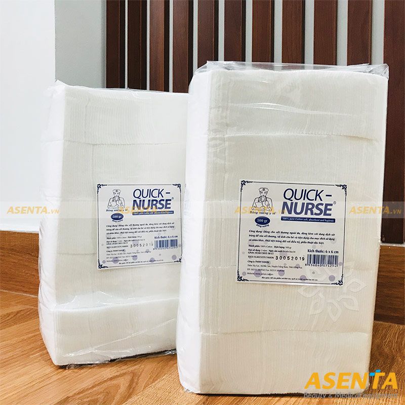 Bông cắt sẵn Quick Nurse là dụng cụ được sử dụng nhiều ở các phòng khám, bệnh viện, thẩm mỹ viện, cơ sở phun xăm thẩm mỹ… với công dụng của bông cắt sẵn là làm sạch vết thương, thấm máu và dịch tiết hoặc được dùng để thấm thuốc và bôi lên vết thương…