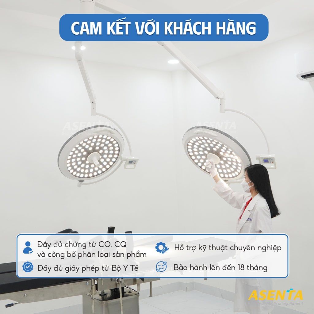Đèn phẫu thuật 2 nhánh kích thước 700m được phân phối bởi Asenta.