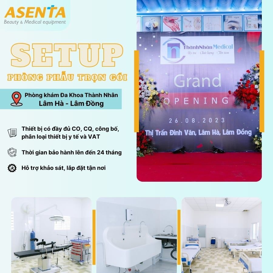 Mẫu setup phòng phẫu trọn gói tại Phòng khám Đa khoa Thành Nhân - Phòng khám chuyên khoa ngoại, xét nghiệm, X-quang, siêu âm. Như vậy, để setup một phòng phẫu thuật tại phòng khám đa khoa tuyến huyện thì cần những trang thiết bị nào? Hãy cùng Asenta tham gia dự án setup phòng phẫu tại Thành Nhân Medical trong bài viết dưới đây.
