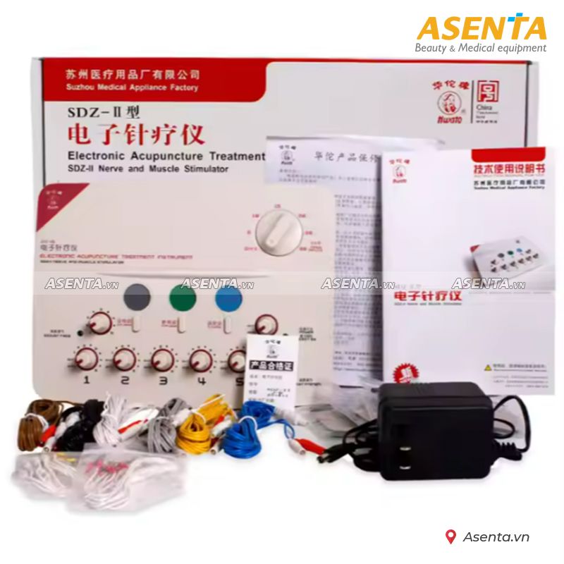 Máy điện châm điều trị Hoa Đà Hwato SDZ II là thiết bị y tế dùng trong ngành vật lý trị liệu được dùng phổ biến tại các bệnh viện, phòng khám y học cổ truyền, trung tâm phục hồi chức năng, vật lý trị liệu, spa massage trị liệu và tại nhà giúp hỗ trợ điều trị các bệnh lý xương khớp như đau thắt lưng, viêm khớp, đau cổ vai gáy, giảm đau, giảm viêm các cơ bị tổn thương. Khách hàng cần mua máy điện châm điều trị Hoa Đà Hwato SDZ II, hãy liên hệ ngay Asenta để được hỗ trợ tư vấn và mua hàng với giá ưu đãi, cạnh tranh.