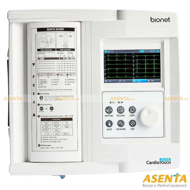 Máy điện tim 12 cần Cardiocare Touch 3000 là sản phẩm thuộc thương hiệu Bionet, đây là một thương hiệu của Hàn Quốc chuyên sản xuất các thiết bị y tế chăm sóc sức khỏe. Máy đo điện tim có giao diện thân thiện với người dùng thông qua màn hình cảm ứng LCD TFT 4,3’’ với nút núm xoay. Pin Li-on có thể sạc lại trong 180 phút, hoạt động / bản in 200 trang.