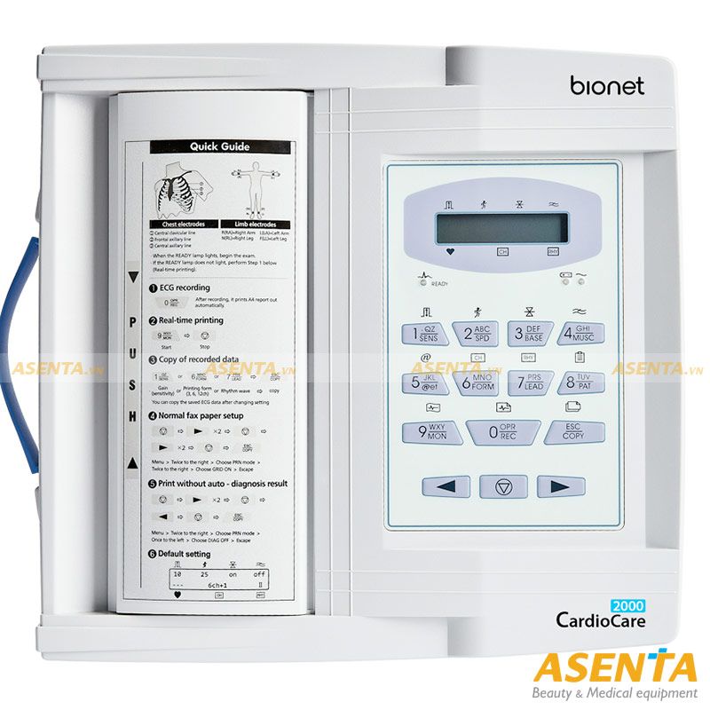 - Máy đo điện tim Bionet Cardiocare 2000 tạo ra các bản in khổ A4 đầy đủ ở các định dạng 1,3,6 và 12ch. Bản in với kích thước đầy đủ cải thiện khả năng đọc và giúp cho việc ghi vào biểu đồ bệnh nhân dễ dàng hơn.