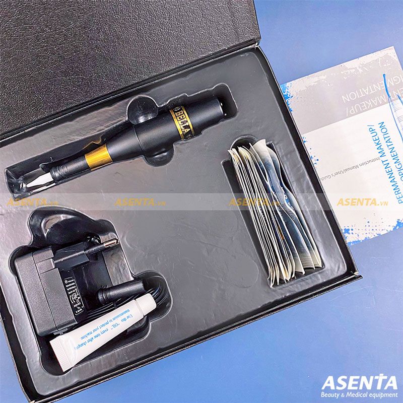 Hiện nay, máy phun xăm Bella được nhập khẩu độc quyền bởi Bella PMU Việt Nam. Máy phun xăm phổ thông Bella được trang bị đầy đủ phụ kiện gồm: