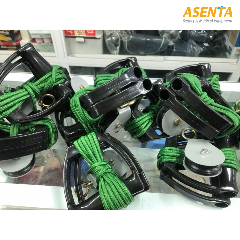 - Người bệnh sử dụng tay cầm để kéo dây qua ròng rọc, tạo ra lực kéo giúp các cơ và khớp tay vận động.
