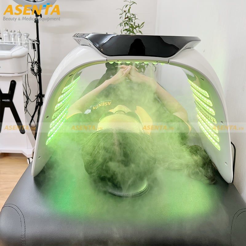 - Ánh sáng xanh lá (532nm): Ánh sáng xanh lá có tần số cao hơn ánh sáng xanh dương và thẩm thấu vào các tầng da sâu hơn. Ánh sáng xanh lá giúp cải thiện vết thâm mụn, giảm viêm và kháng khuẩn.